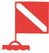 This red flag with a diagonal white stripe indicates that one or more diver(s) are diving in the immediate area. All boats must remain 150 feet from the flag, unless in the diving party.